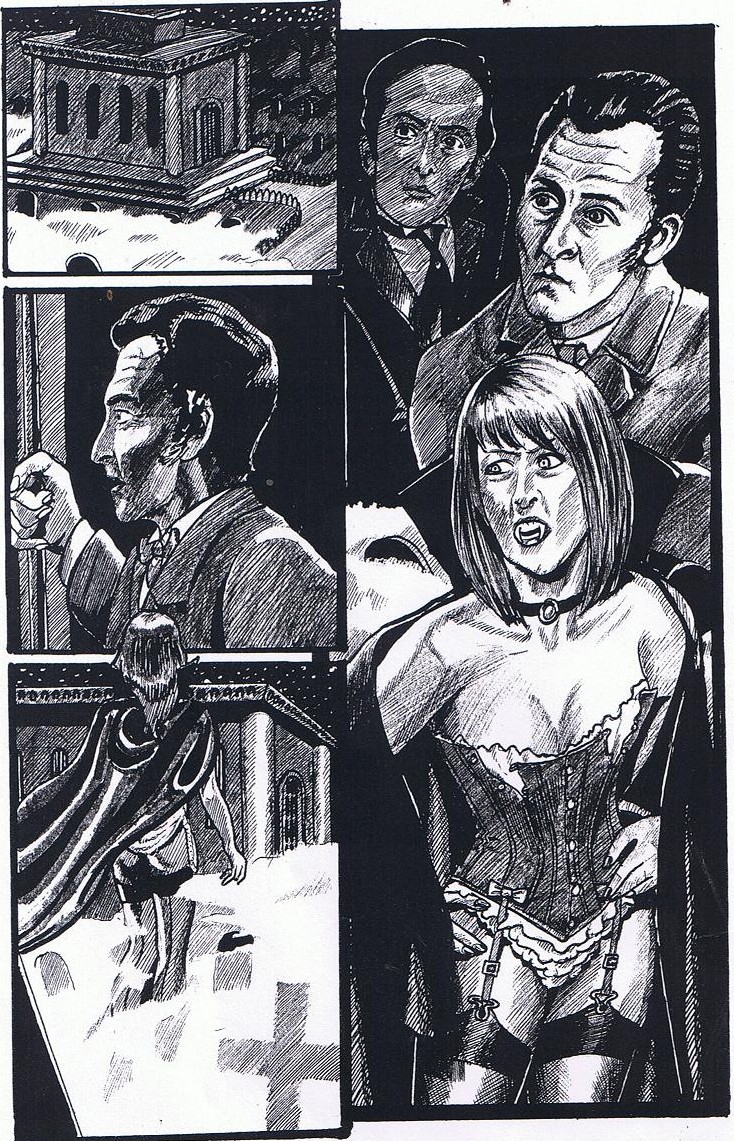"I really can't see the point in this, Van Helsing!" gasped one of the two figures as his partner used a purloined key to open the gated vault.